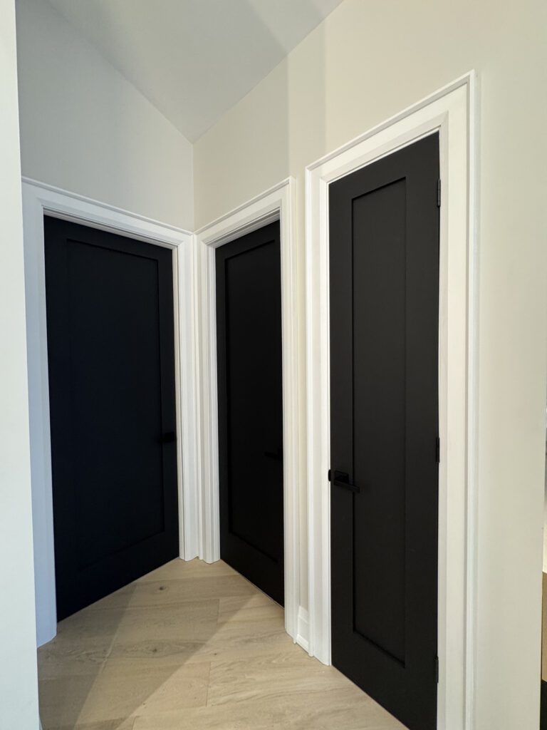 - Dark trim or doors: Adds bold contrast against light walls and makes windows and doors pop while emphasizing flooring details with the contrast. Perfect for transitional spaces.